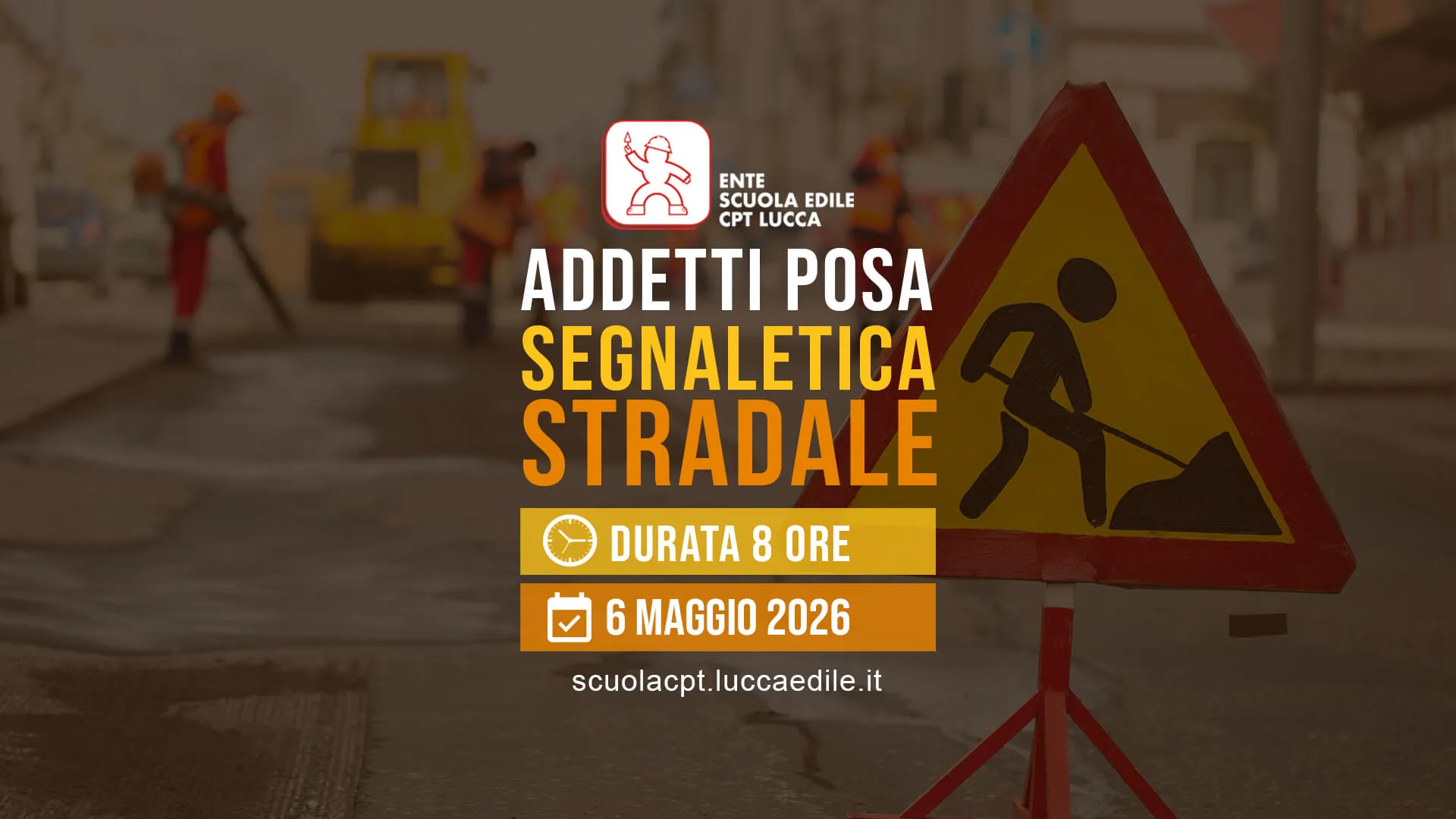 Quando: 6 Maggio 2026 | Durata: 8 ore | Corso diretto a lavoratori e preposti addetti alle attività di revisione, integrazione e apposizione della segnaletica stradale destinata alle attività lavorative che si svolgano in presenza di traffico veicolare...